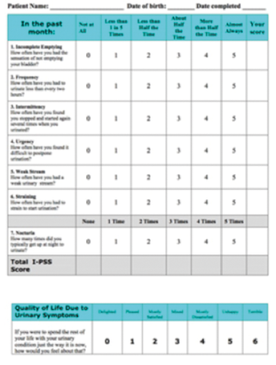 International Prostate Symptom Score (IPSS).