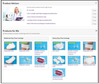 - A validated product advisor tool for choosing combinations of products to suit physical needs, lifestyle activities and personal preferences (Figure 3);