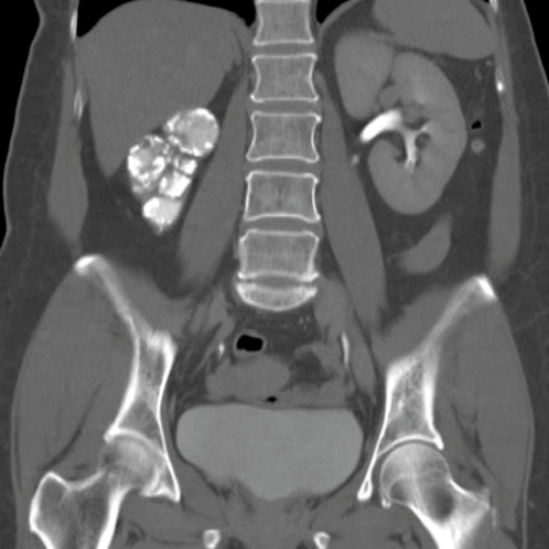 Renal calcification, infundibular stenosis, autonephrectomy, ureteric calcification / strictures, calcified bladder, small volume bladder.