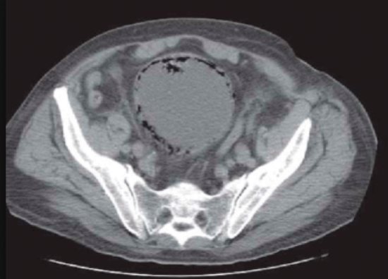 - Figure 2 shows other radiological features of one of these possible causes. What is the likely diagnosis? How often does this condition affect the urinary tract?