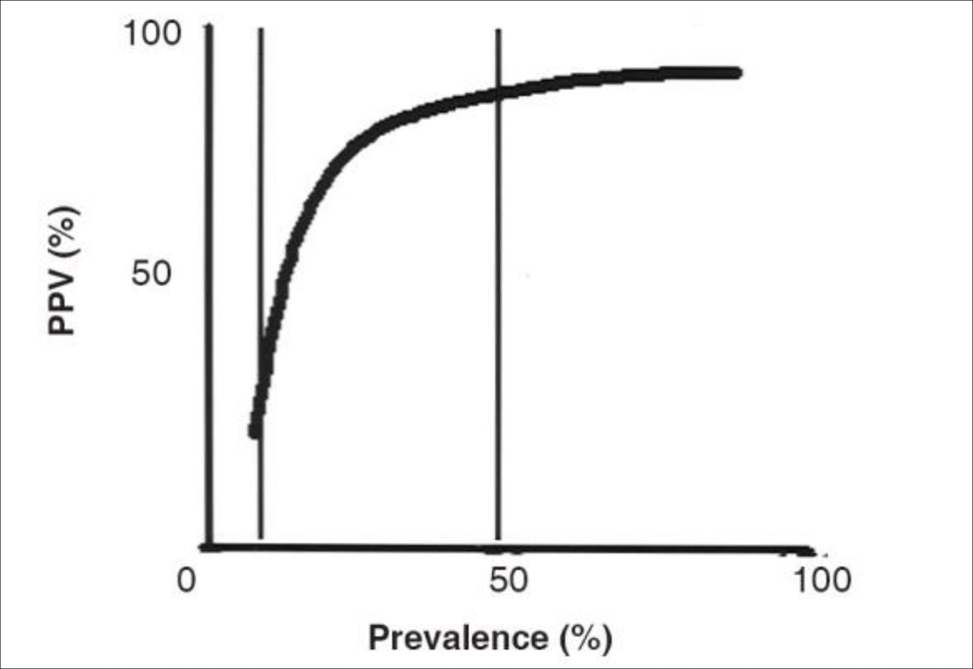 Figure 1: The PPV increases as the prevalence of the disease in the population increases [Reproduced from: Parikh R, Mathai A, Parikh S, et al. Understanding and using sensitivity, specificity and predictive values. Indian Journal of Ophthalmology 2008;56(1):45-50 © Indian Journal of Ophthalmology].