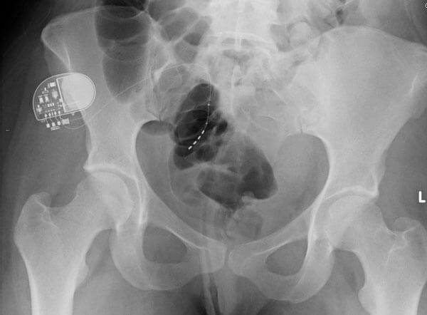 - What is the device seen in the picture and the x-ray below?