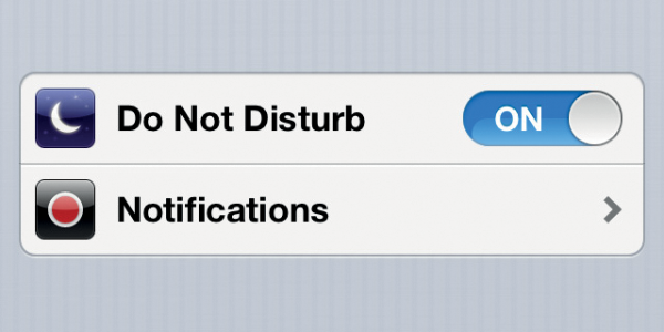 The iPhone and iPad have a built in Do Not Disturb feature which limits when and who can contact you. The Do Not Disturb feature can be accessed from the settings or by swiping up from the bottom of the screen. When the Do Not Disturb feature is activated, a crescent moon icon is shown in the status bar next to battery status. The feature allows you to select which contact groups, favourites or if no one can contact you.
