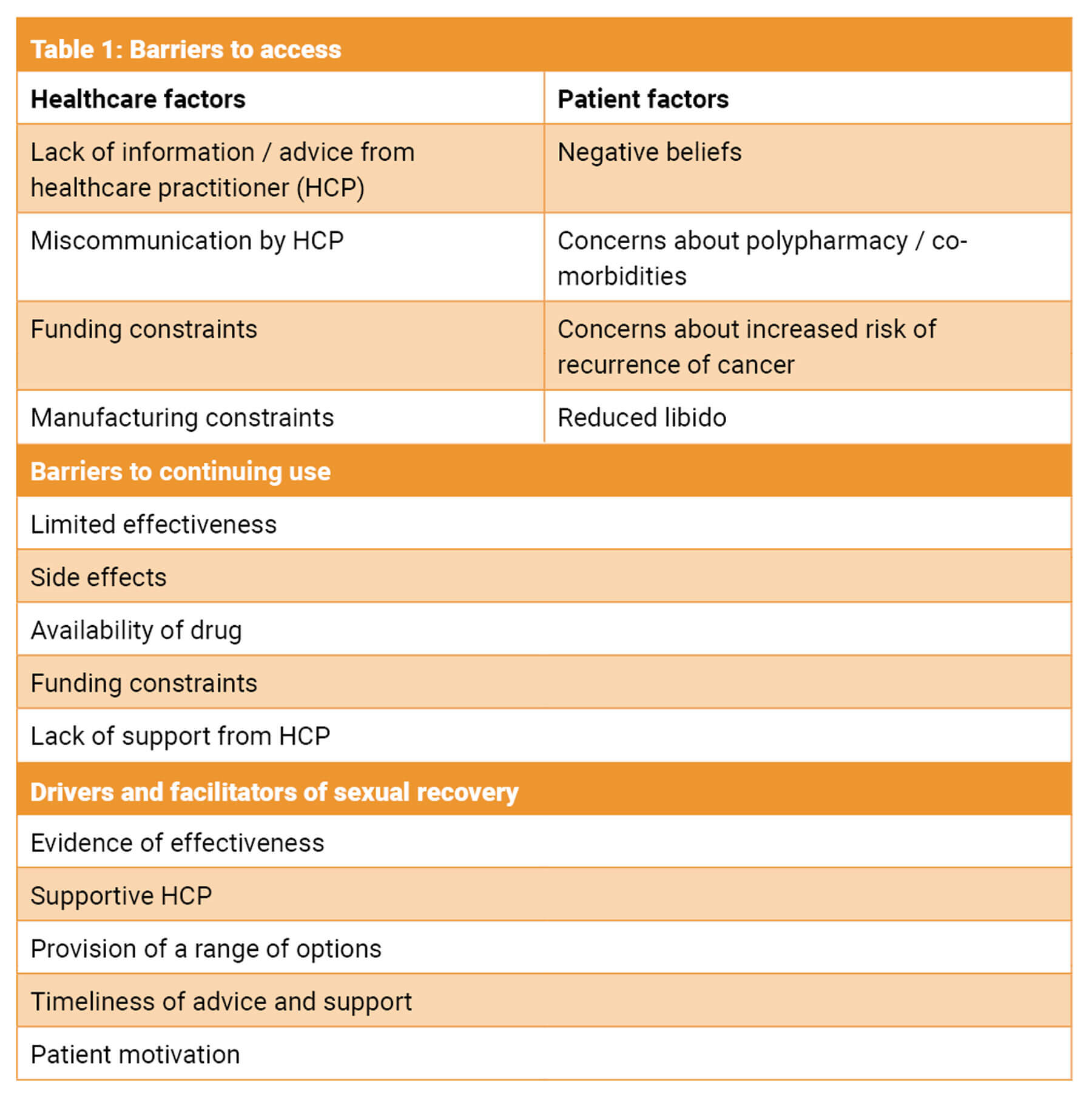 Patient experiences of support for sexual dysfunction