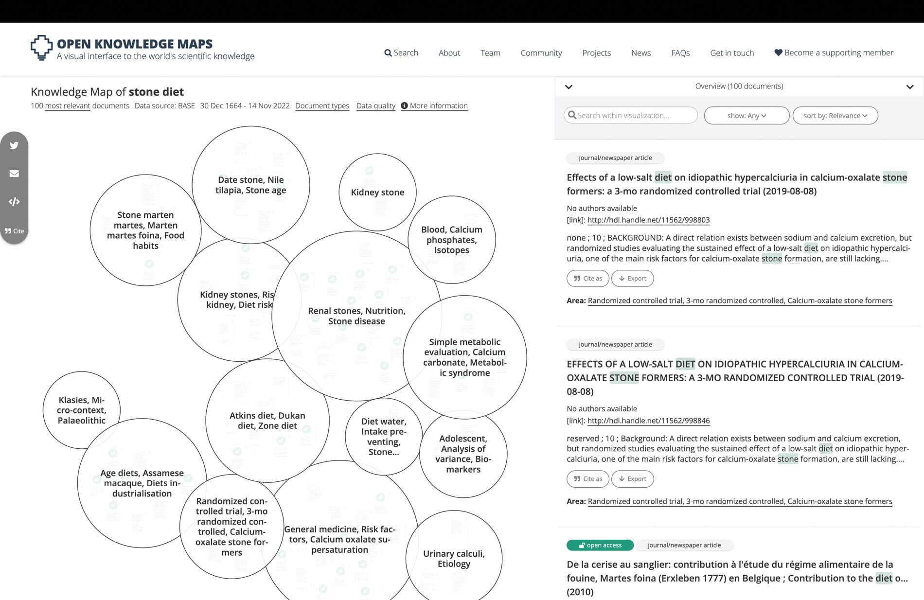 Marketed as the Spotify for papers, Researchrabbit.ai takes a similar approach to Connected Papers. Once you sign up, the front page asks you ‘to add a paper you know and love’ with a title, DOI, PMID or keywords. You can then explore Similar Work, References or Citations via a visual format in either a network or timeline format. Clicking on another paper (represented by a circle) shows the papers abstract and then sends you down a virtual rabbit hole as you can then select to explore that paper’s Similar Works, References or Citations in a further visual format or to Explore People or Other Related Content. At each stage a list of papers can be exported in BibTeX, RIS of CSV formats.