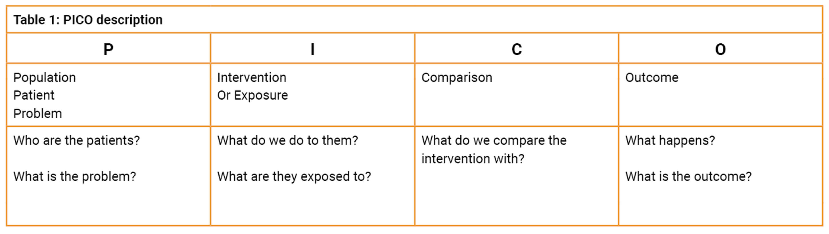 This is the most important aspect of SR / MA. The research question should be novel, interesting, feasible, ethical, and relevant. However, there are two important aspects - firstly, the problem to be addressed should be clear, unambiguous, and structured, and secondly, a thorough search should be completed to be aware of any similar SR / MA published in recent times. Once ready, the question posed can be structured in PICO format - Population, Intervention, Comparison, and Outcome (Table 1).