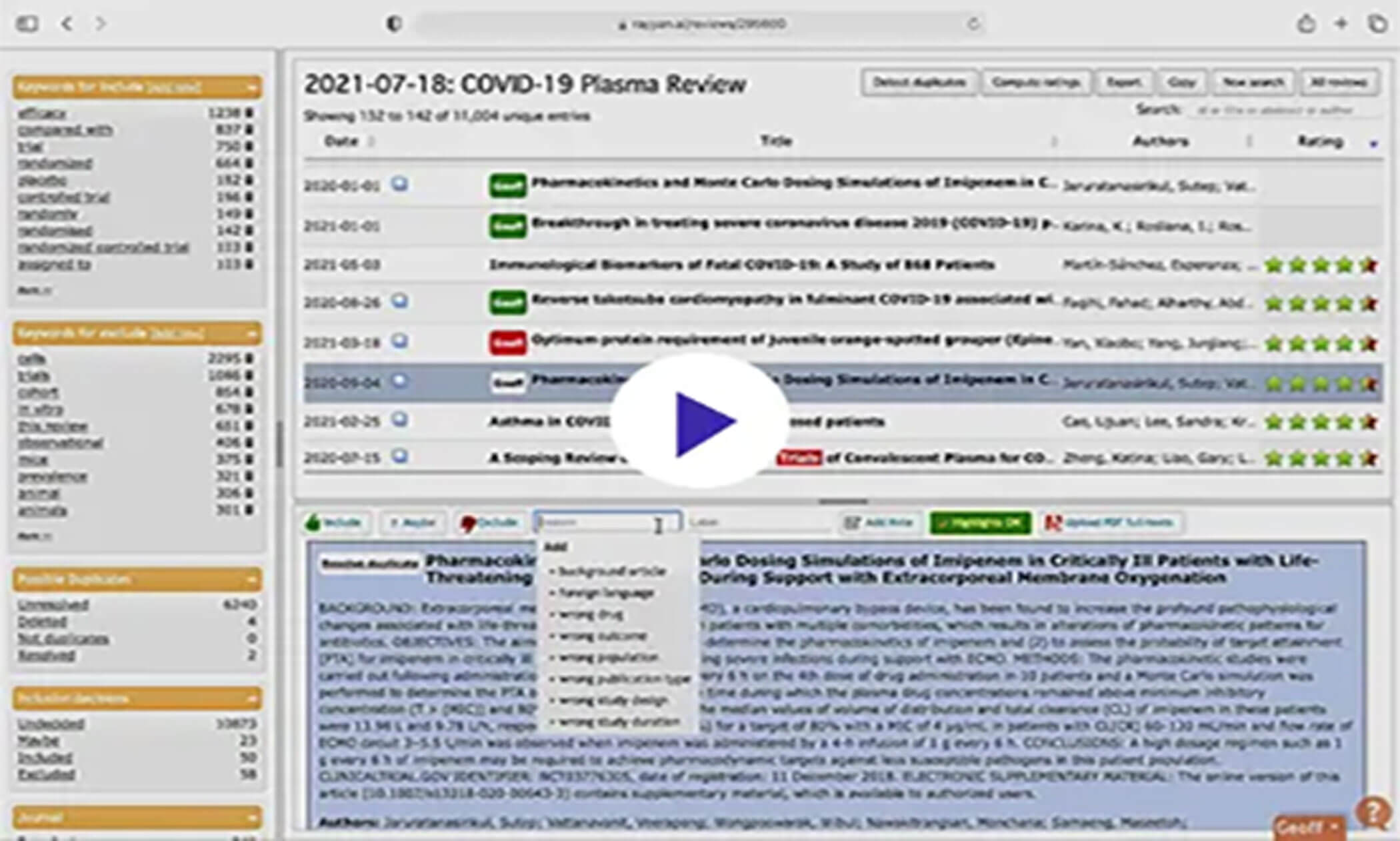 Figure 1: Screenshot of Rayyan software.
