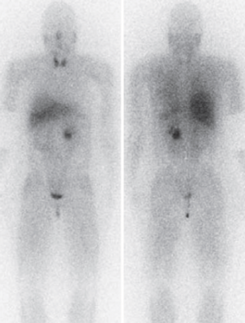 Nuclear medicine metaiodobenzylguanidine (MIBG) scan. Demonstrates a left phaeochromocytoma with no further adrenal or extra-adrenal lesions.