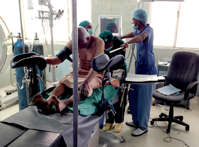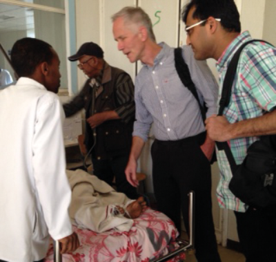 During this period, we concentrated on providing training in bladder outlet obstruction endoscopic procedures, which included transurethral prostatic resection (TURP), bladder neck incision and optical urethrotomies. The majority of the prostates I came across for surgery were very large and vascular, consequent to typically late presentation and lack of prior pharmacological treatment. This clearly makes the provision of training in TURP more difficult, but both Dr Aberra and Getch took a keen interest in learning and demonstrated their determination to become skillful in lower urinary tract endoscopic procedures and by the end of the week had demonstrated sound progress in their level of endoscopic competency. I too gained valuable experience from being able to perform an open transvesical prostatectomy, which is now rarely done in the UK. During TVP, the theatre lights failed and we had to use bicycle headlamps brought by Graham Watson! Moreover, a surgical glove could not be put to better use than as a drain bag. The biggest challenge that one faces working in such circumstances is to be able to function with limited facilities and to be able to adapt to unexpected troubles of all kinds.