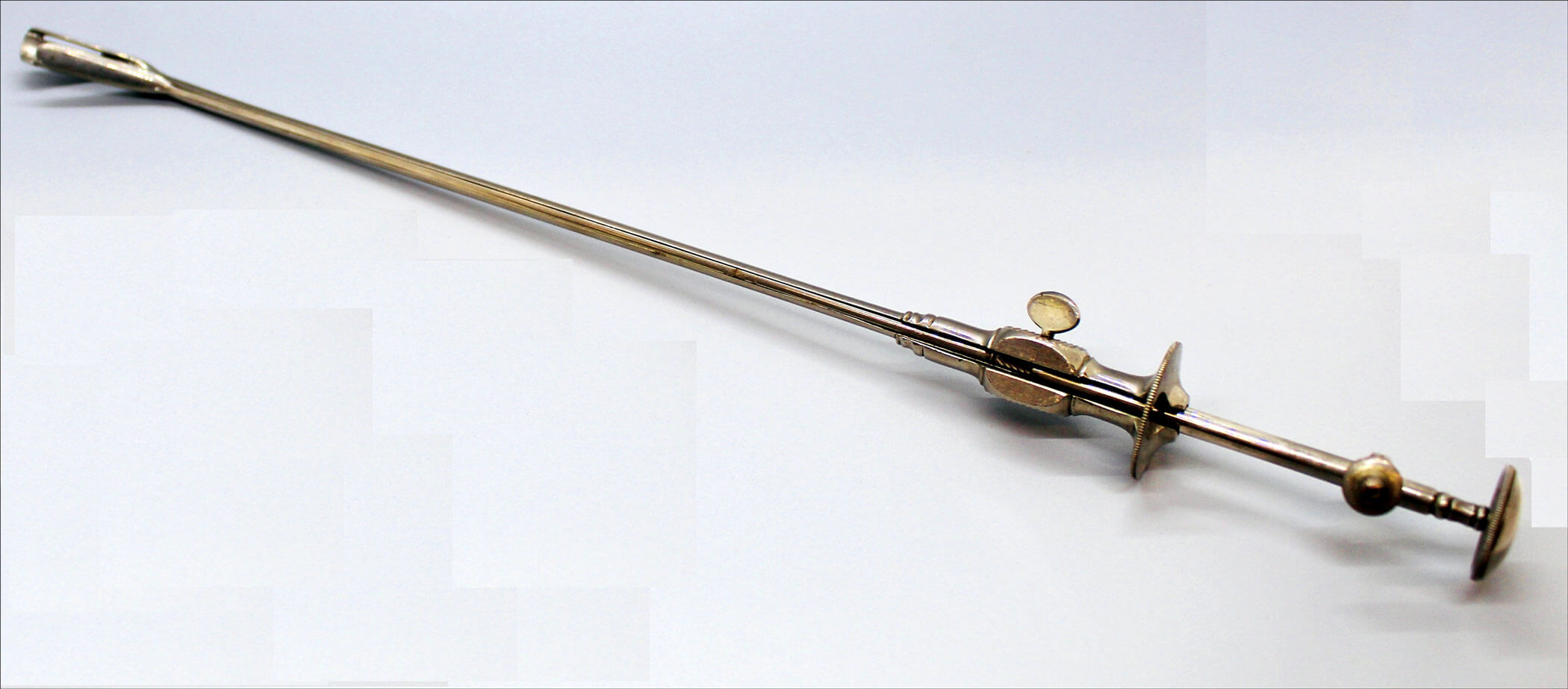 Prior to the invention of the cystoscope, objects had to be removed blindly. Removing foreign bodies from the bladder was akin to removing small stones or stone fragments which had been created by the crushing blind lithotrites, which began to appear from the 1820s. Instruments were specifically designed to remove stone fragments; these instruments could also remove foreign bodies. Later, surgeons and instrument makers began to devise tools specifically for this. These look very similar to the instruments for removing stone fragments and indeed I imagine the two types were sometimes interchangeable (Figures 3 and 4).
