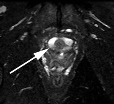 Uretheral diverticula are usually characterised as a hyperintense periurethral cystic lesion on T2 weighted imaging (Figure 3). They are hypointense on T1 weighted sequences. The diverticula neck may or may not be visualised. The addition of a gadolinium-based contrast agent can help in differentiating diagnoses. Irregular enhancement or mass-like components within a diverticulum may suggest infection or malignancy [2]. Once identified, radiologists should report the size and number of urethral diverticula, as well as the presence of any complications. The position of the diverticular neck if visible should also be commented upon to aid possible surgical intervention [2].