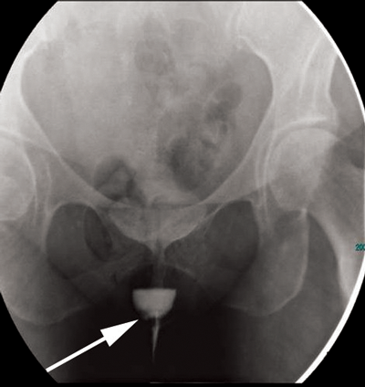 Voiding cystourethrography was traditionally used to investigate urethral diverticula due to its high sensitivity and specificity. The bladder is catheterised with a 14-French Foley catheter and filled with contrast agent [2,4]. Anteroposterior and oblique images are obtained during filling as well as during and after voiding [2]. It has the advantage of being technically easy and relatively simple to perform. Unfortunately, fluoroscopy is rather insensitive for those diverticula with obstructed orifices. It also involves ionising radiation and requires catheterisation, which can be uncomfortable for the patient. It can only provide intraluminal information.