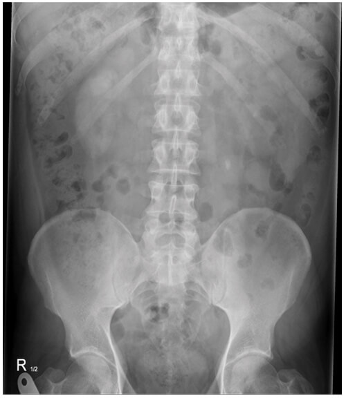 - What does this plain X-ray of kidneys, ureters and bladder (KUB) show?