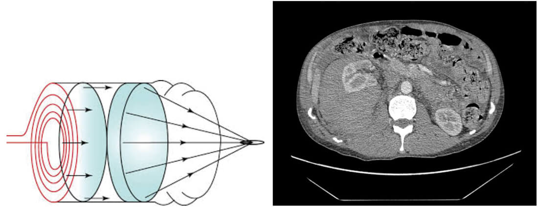 - What do the X-ray KUB and the CT scan images show?